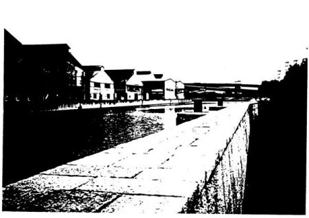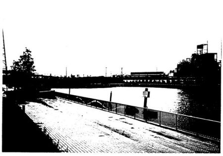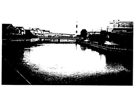中堀運河も右側の岸沿いにボードウォークが整備されており、北堀運河と連絡している。岸沿いに工場が隣接しており船舶の航行がある。
