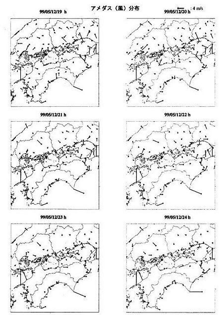 アメダス風分布(1999年5月12日19時〜24時) 資料1-2
