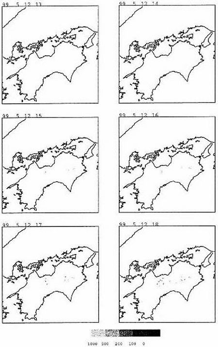 計算結果:霧分布(1999年5月12日13時〜18時) 資料1-20