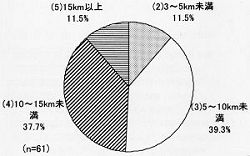 問2.気候のよい春や秋に、海辺の魅力的な観光資源を立ち寄りながらハイキングまたはウォーキングをするとすれば、何キロくらいが適当な距離であると思いますか?(○はひとつ)