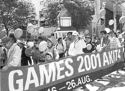 パレードの主体は秋田ワールドゲームズ2001首都圏支援実行委員会の呼びかけで集まった秋田県出身者が中心であった。