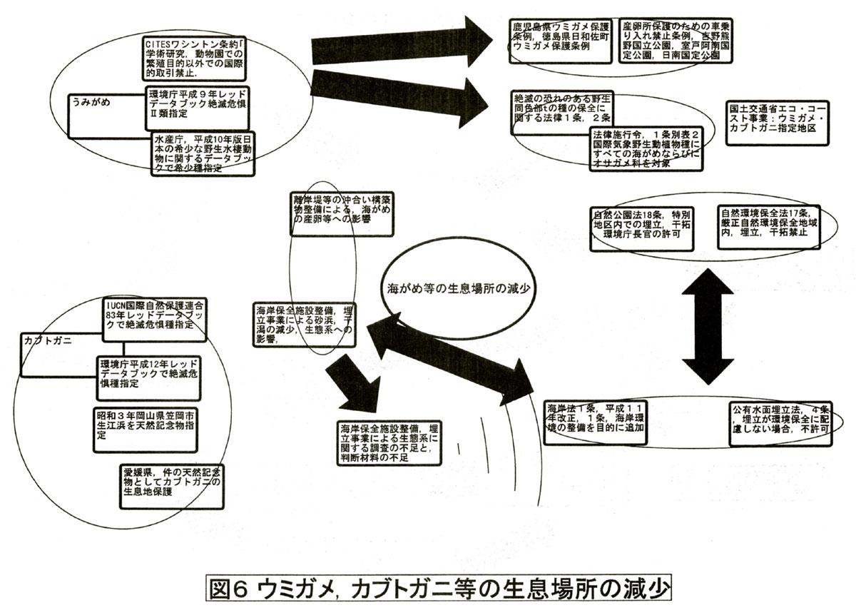 図6 ウミガメ、カブトガニ等の生息場所の減少