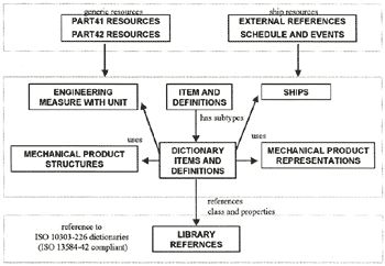 船の仕様作成から設計、承認、建造、運航、検査・保守、破棄までのライフサイクルの中で、推進システム、補機システム、甲板機械に関する製品データを対象としている。取り扱われる情報は製品構造(部品の構成および組立方法)、バージョンや承認、製品の定義および形状表現などである。