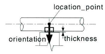 thicknessはOrifice_plateがもつふたつの面問の垂直な距離を示す。単一あるいは幅をもつ値となるかもしれない。