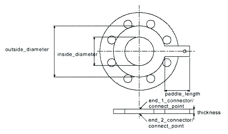 Paddle_spacerはふたつのflange(原文4.2.131参照)オブジェクト間およびPipe(原文4.2.261参照)を通る流れの余地で空間を予め占拠するSpacer(原文4.2.360参照)の一タイプである。