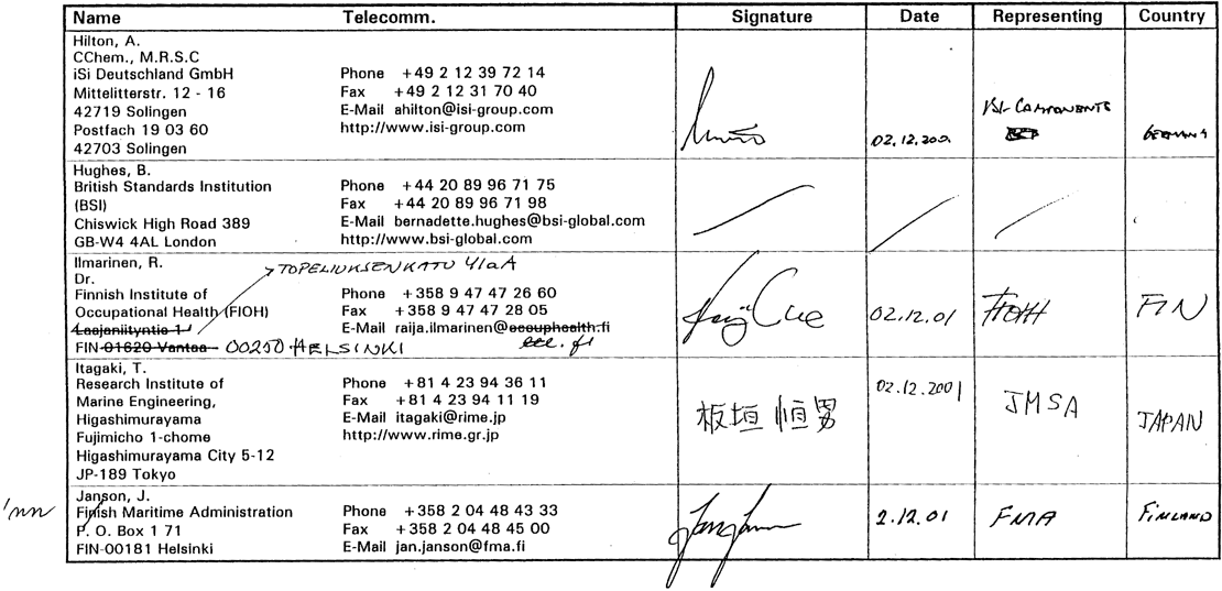 Date(s) of Meeting: 2001-12-02 to 2001-12-05 Place of Meeting: Sirkka/Finland