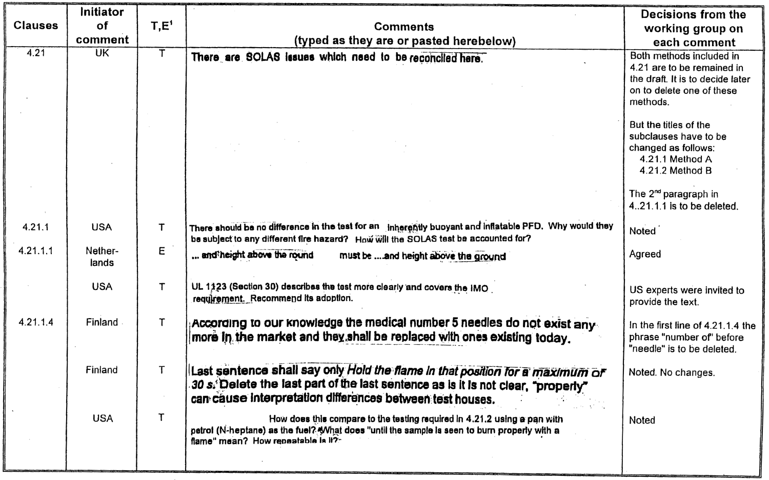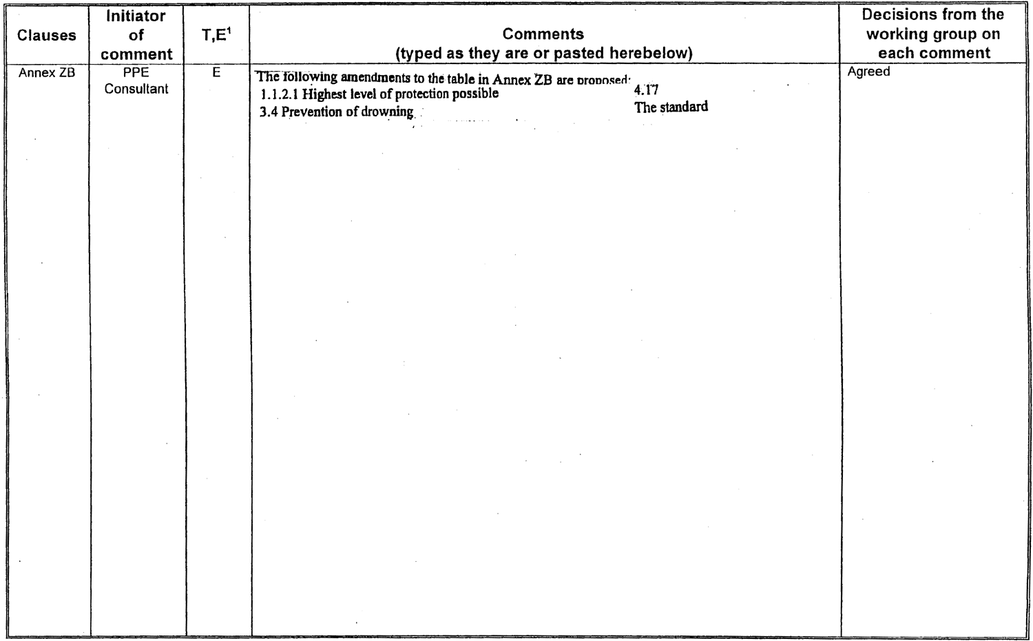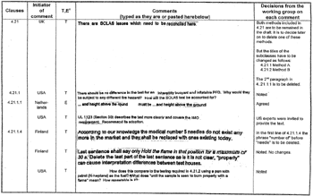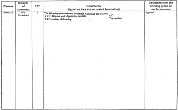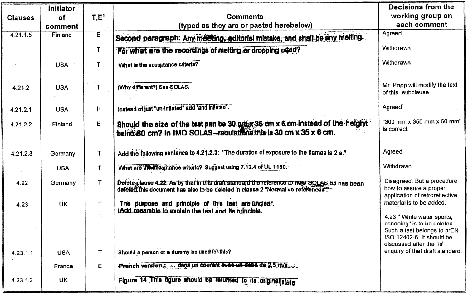 Table of decisions