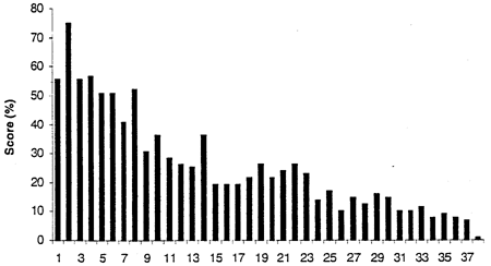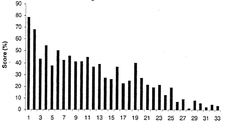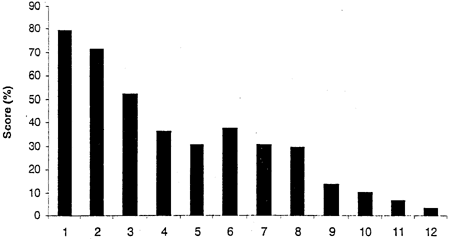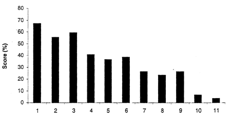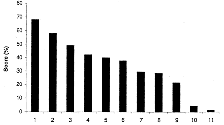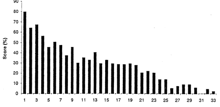 Figure 15 Prioritisation of requirements for personal life-saving equipment regarding information and training. The requirement numbers on the horizontal axis corresponds to the numbering in table 1. All respondents with experience from fishing vessels (n = 88).