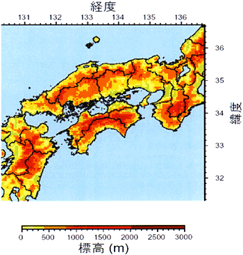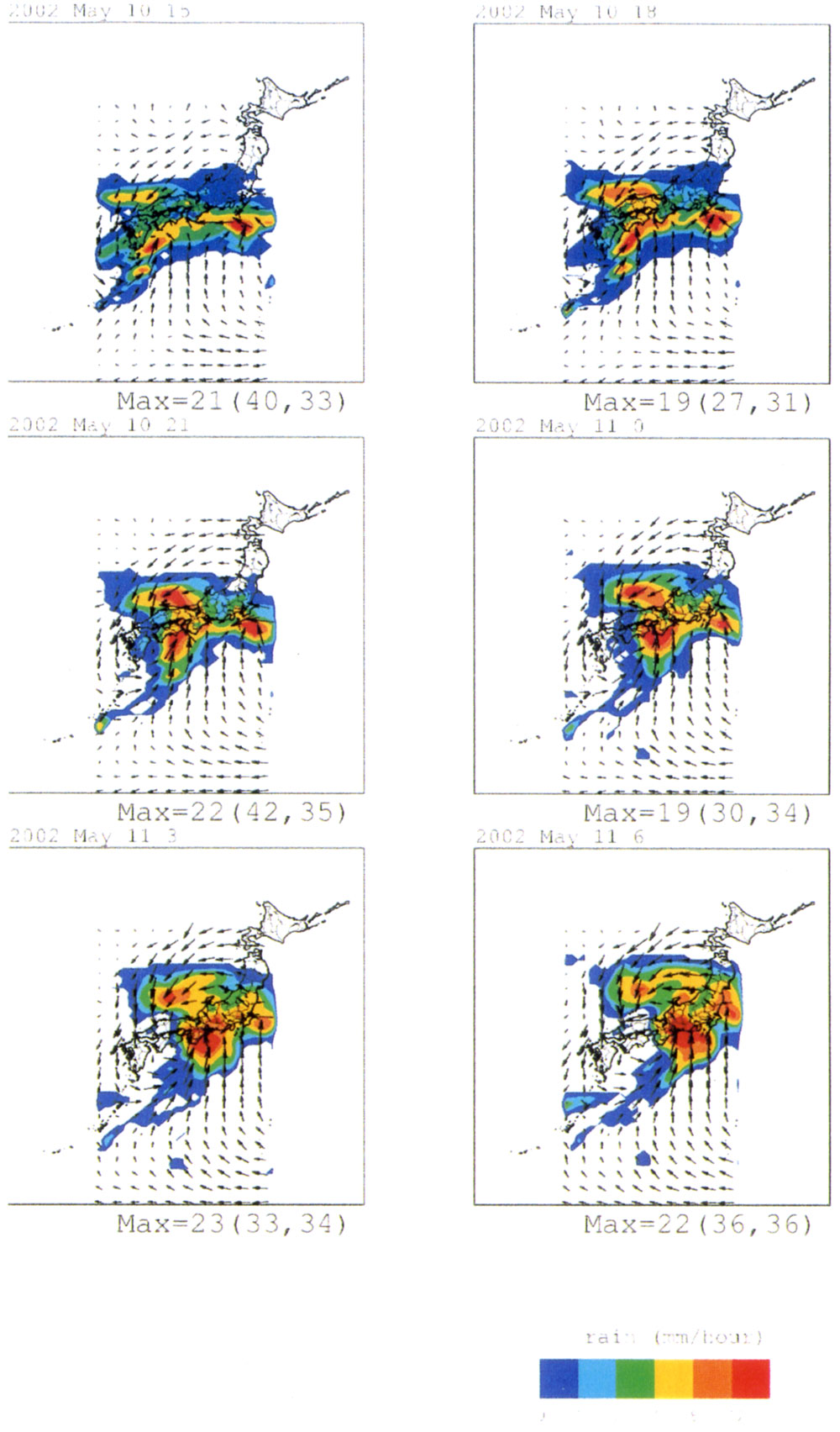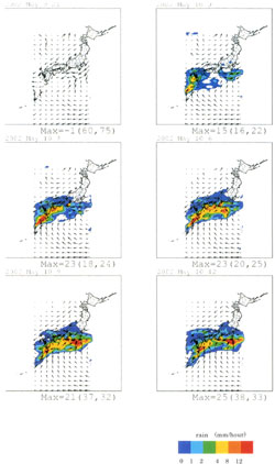 計算領域を図3.2.4に、初期値・境界値に使用した気象庁GPV(RSM)の降水分布を図3.2.5〜3.2.6に示す。