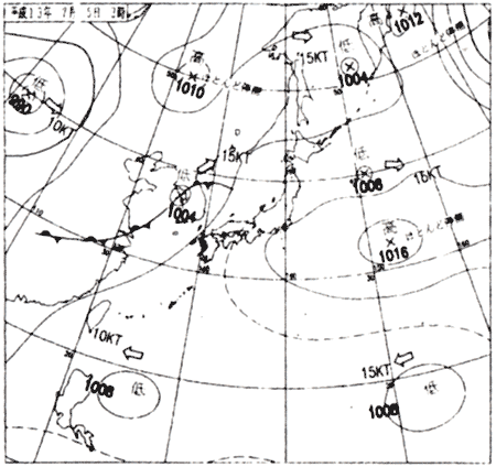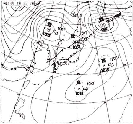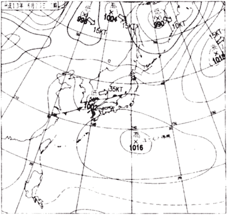 表4.2.1に対象日における天気図を示す。対象日は四国の南東に高気圧があり、南から暖かく湿った空気が流入しやすい気象条件だった。