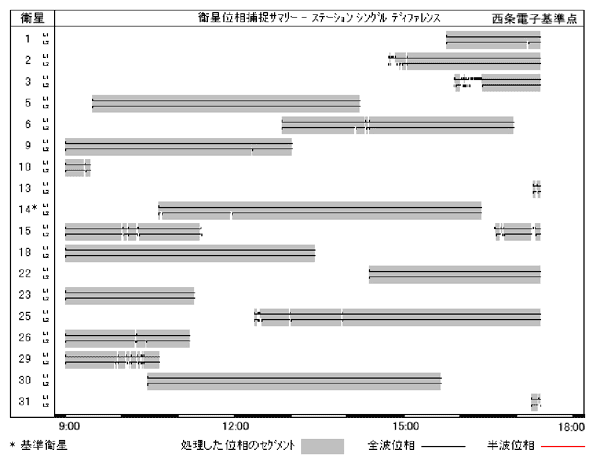 図17. 基準点と移動点の衛星位相捕捉サマリー(平成14年10月10日)