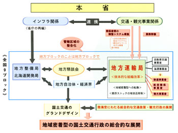 地方運輸局が、「21世紀国土交通のグランドデザイン」に沿って総合的な交通政策・観光行政を展開するため、