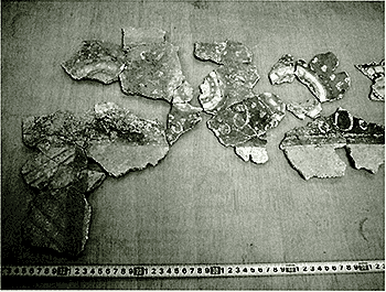 写真1. 赤褐色地を有する花文様