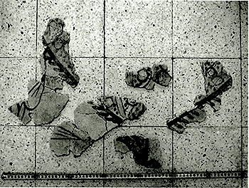写真14. 植物文様B(右)と植物文様A(左)の接合