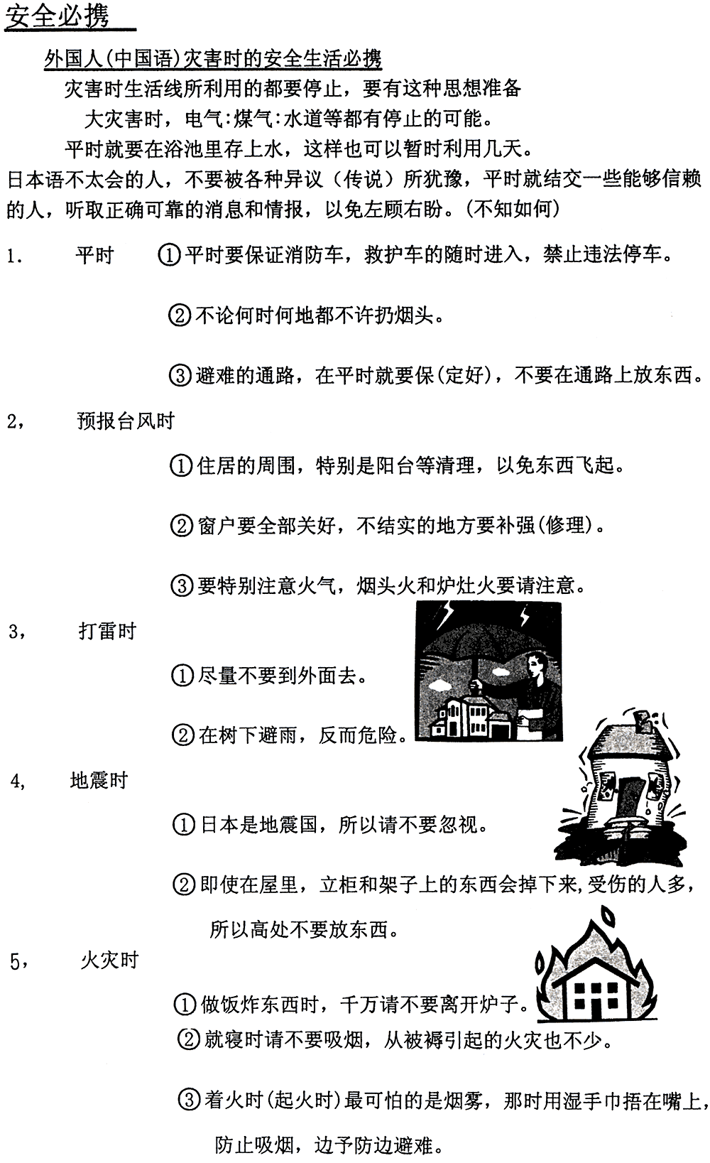 日本は地震国であるので、油断しないようにしましょう。家の中に居ても、箪笥等や棚の物が落ちてきて怪我をする人が多いので、高い所には物を置かないようにしましょう。 |