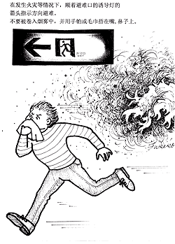 出火時、一番怖いのは、煙です。口に濡れタオル等で煙を吸い込まないよう、予防して避難してください。 |