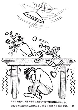大きな地震等、緊急の場合は身近な机の下等に避難しましょう。