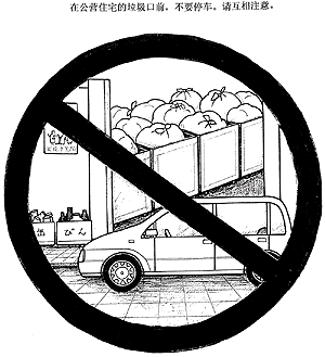 公営住宅のごみ置き場の前に駐車してはいけません。お互い気をつけましょう。