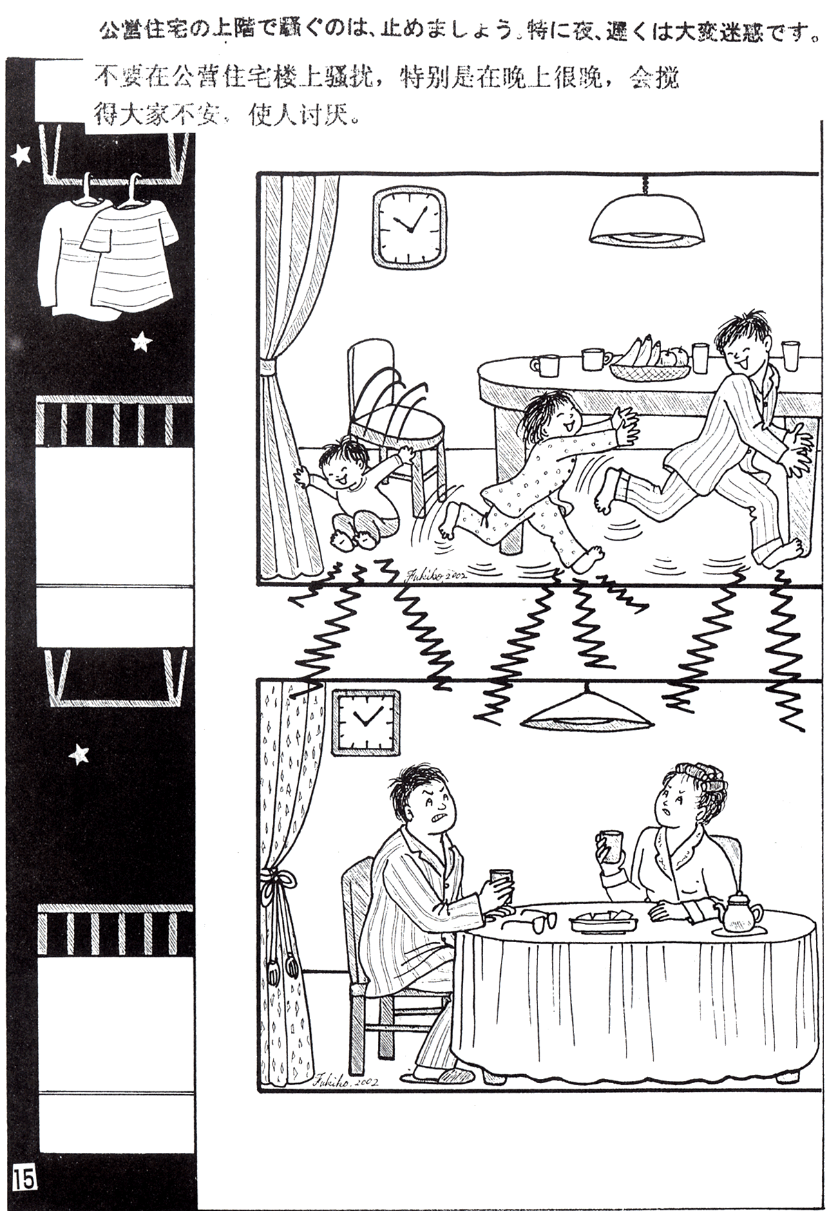 公営住宅の上階で騒ぐのは、止めましょう。特に夜遅くは大変迷惑です。