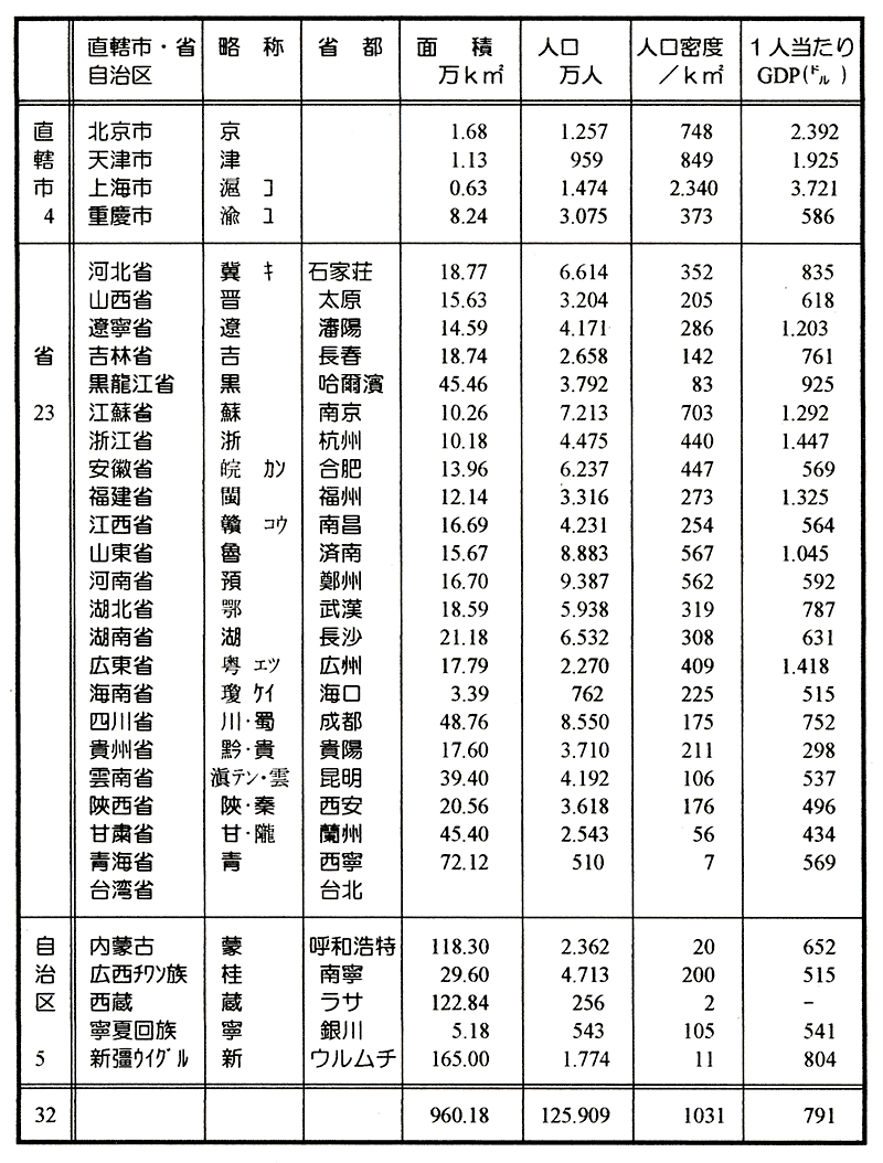 三菱総合研究所編「中国情報ハンドブック」2000年版より