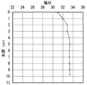 図11. 舞根湾St.1の塩分(7月〜9月)