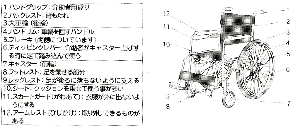 ・手動車いすの各部の名称