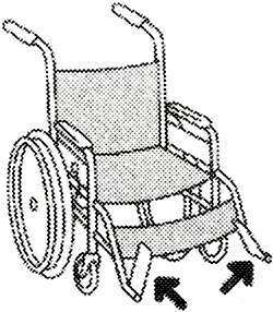 人が座ってからフットレストを下ろします。座る前に足を乗せるといすが跳ね上がり危険です。