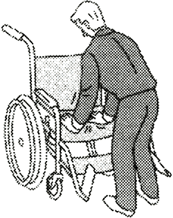 両松葉杖を同時に出す。次に両足を同時に松葉杖の手前へ小さく振り出す歩き方。この歩行は、速度は遅いが安定性があります。 |