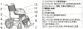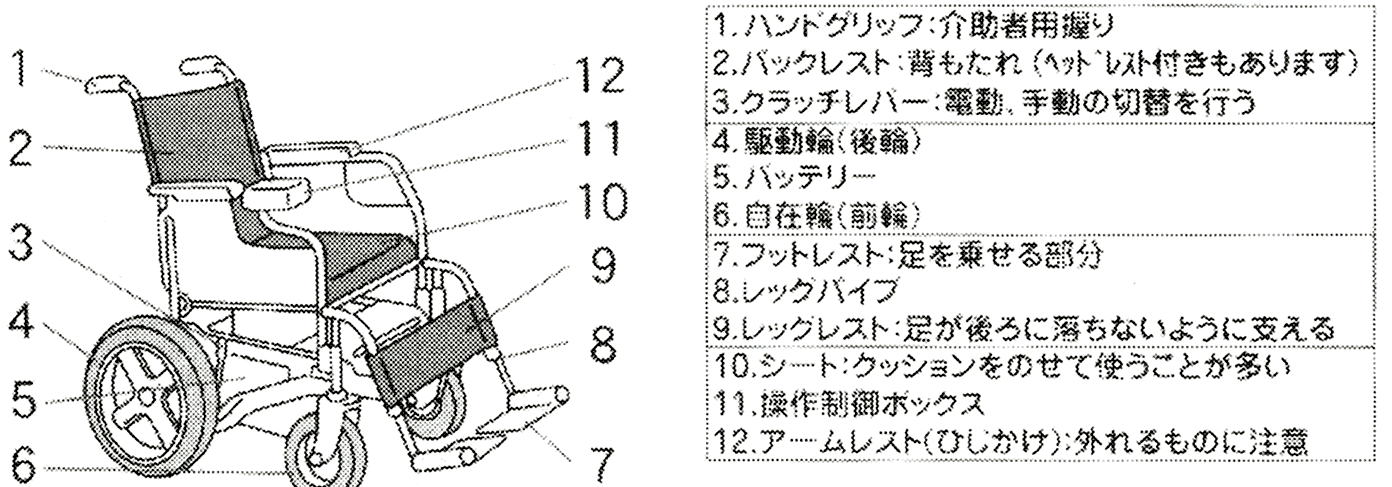 ・電動車いすの各部の名称