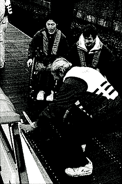 乗船のため車いすから離れる時、車いすが横倒しの危険性があるので注意を要します。 |