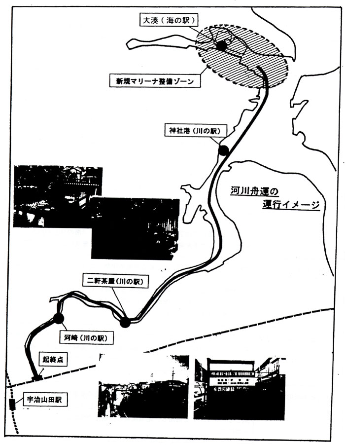 また、それら地域水上交通として検討される水上バス等のチケット販売窓口などの施設を設置する(マリーナのクラブハウス、レストハウス、海洋研修センターなどでの販売を想定)。