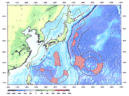 図1−10 新たにわが国の大陸棚とできる可能性がある海域(オレンジ色の部分)