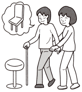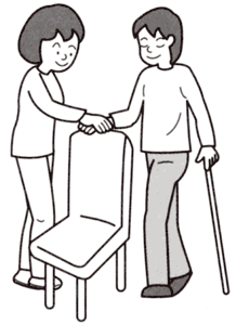 (1)視覚障害者を椅子の後ろに誘導して、いったん立ち止まります。