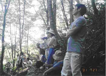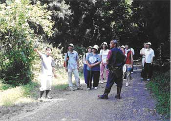 里山の維持管理について地元の現役作業者よりレクチャーを受ける