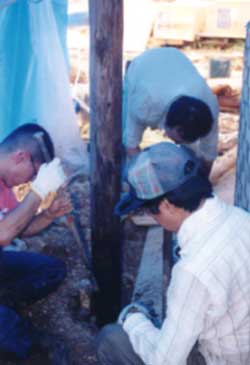 炭小屋周囲柱立て。