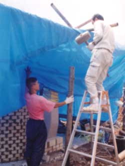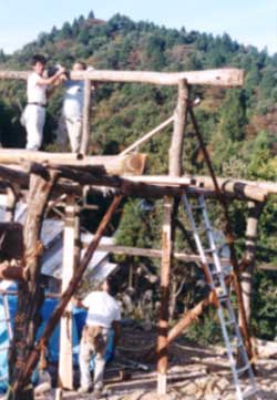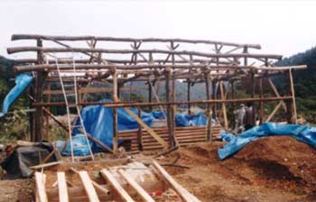 炭小屋棟上げ