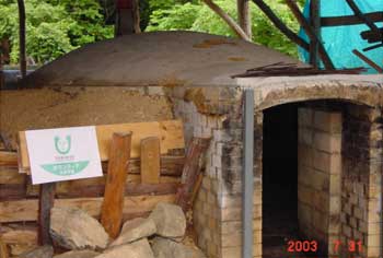 炭材の詰め込みを待つ炭窯