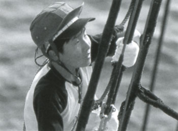 夜には、いっしょに乗った仲間と、デッキで学校やゲームのことを話して、楽しかったです。運動会の時には、急に強い風雨になりました。帆をたたむ時、雨ですべりやすく、足がふらついて、海に放り出されそうでした。その日の夜は、船がかたむいた状態だったので、よくねむれませんでした。