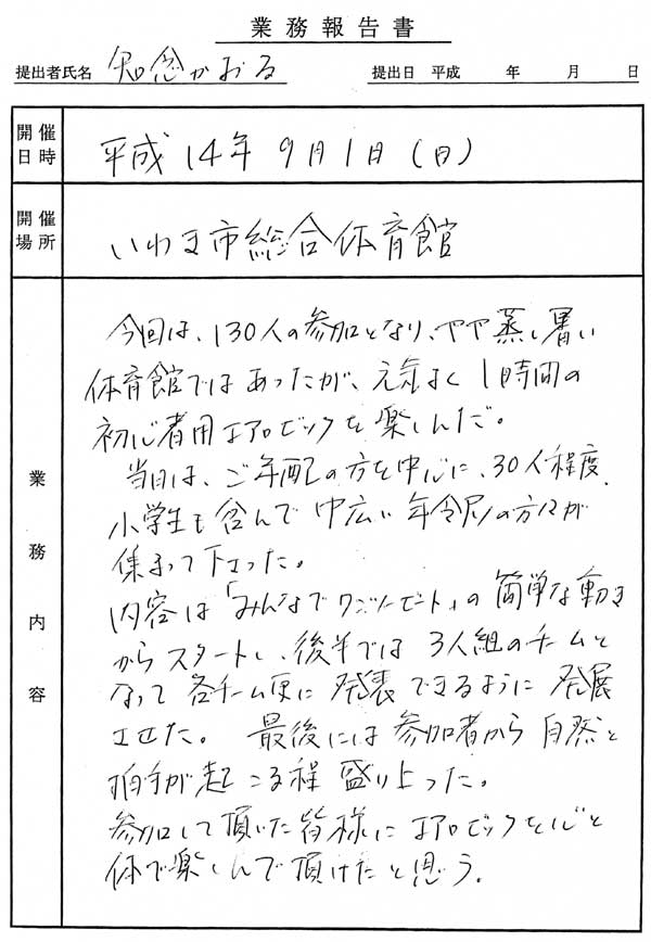 平成14年度「生涯エアロビック教室」概要