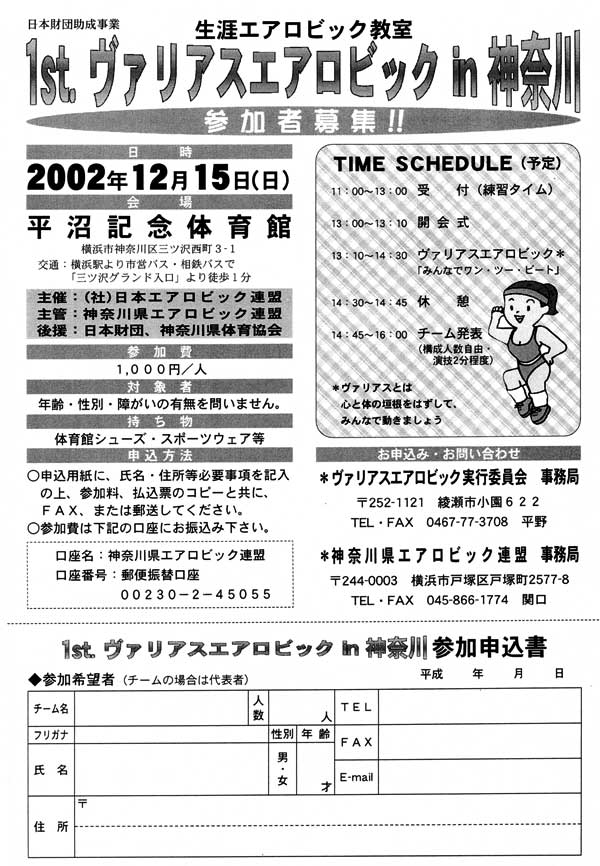 「生涯エアロビック教室」 ―ヴァリアスエアロビック in 神奈川― |