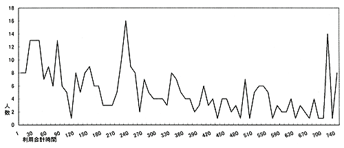 居住形態では、一人暮しの人の平均利用時間が長い(表2)。