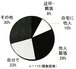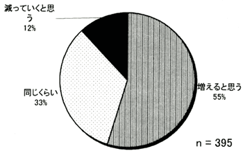 「増える」と予測する人のうち、介助者である親族と同居している割合が高い理由は、今後一人暮しをすることを考慮してのことと推測できる。設問には、「身体状況が現状のままで、緊急時にはサービスの利用量を増やすことができる」という条件をつけたが、記述回答欄に「緊急時」のことを考えて「増える」と選択した理由を記した回答者が多かったことから、それだけ「緊急時」への不安が多いことが指摘できよう。