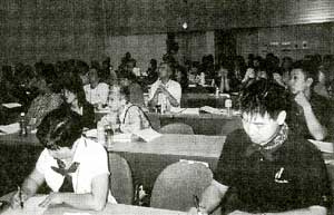 小田(茨城) これまで、デフファミリーと言う言葉を知らなかった、筑波に入り、それは恥ではなく、誇りを持っていいということを聞いた。聾学校の生徒を交換留学などして、いろいろな経験ができれば、世界がもっと広がると思う。新米の先生方に対して、24時間手話だけの世界に入れさせるのは、良い考えだと思った。