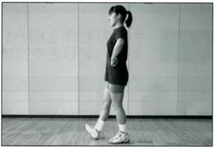 (1)前歩行・後ろ歩行・その場歩行 横歩行・大股歩行のフォームを確認する (2)その場で歩行運動を行う |
