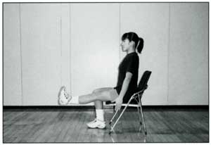 (1)いすに腰かける (2)片足ずつ膝を伸ばしながら、いすと水平の高さまで上げる |