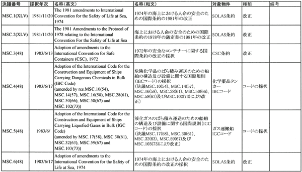 MSC決議一覧(MSC.1(XLV)〜MSC.150(77))