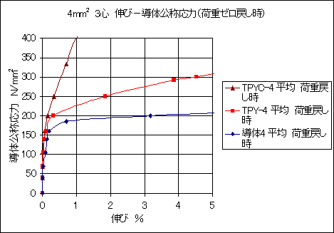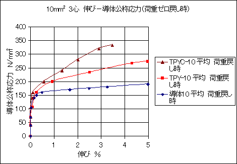 3心 除荷重時 伸び―導体公称応力曲線