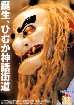 ところで、宮崎には西都原古墳群に代表される数々の史跡をはじめ、神話や伝説、神楽などの民族芸能も数多く残されています。今年6月に、これらの地域を結ぶ新しい広域観光ルート「ひむか神話街道」が開通しました。この街道は、北は高千穂町から五ヶ瀬町、椎葉村、南郷村、西都市と山々が連なる内陸地を国道や県道等で結び、佐土原町を経て宮崎市に到達し、太平洋を望みながら国道220号線を南下して、日南市より再び内陸地に入り、北郷町、田野町で国道269号線に合流します。更に、山之口町、高城町より国道10号線に向かい高崎町、そして南の高千穂と言われる高原町の皇子原を結ぶ総延長約300kmの観光ルートです。
