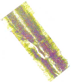 これらの結果より、(d)一様性のみの分類結果から、散乱強度が低いDの領域のみを区別し、残った領域について、(a)平均のみで分類する方法を採用した。最終的な分類画像を図87に示す。分類結果から以下のことが分かる。