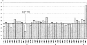 平成13年と比較すると、東京都が前年に引き続きわずかに上昇(0.1ポイント)、神奈川県、京都府及び大阪府は前年と同率、他の道県はすべて低下している。